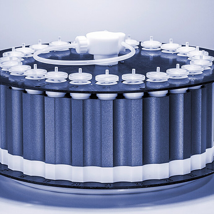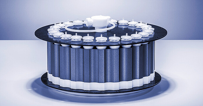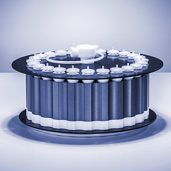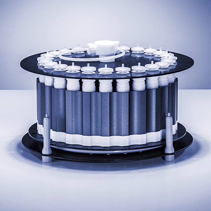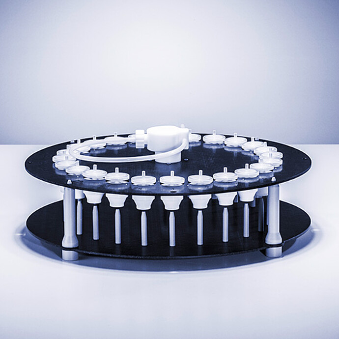 24EVAP 可大大简化和加速消解前后酸的微波辅助蒸发处理,可同时浓缩 24 个含水样品溶液。将酸蒸汽安全排放到外部的吸收装置中进行中和,然后就可以使用 24EVAP 附件轻松将其去除。