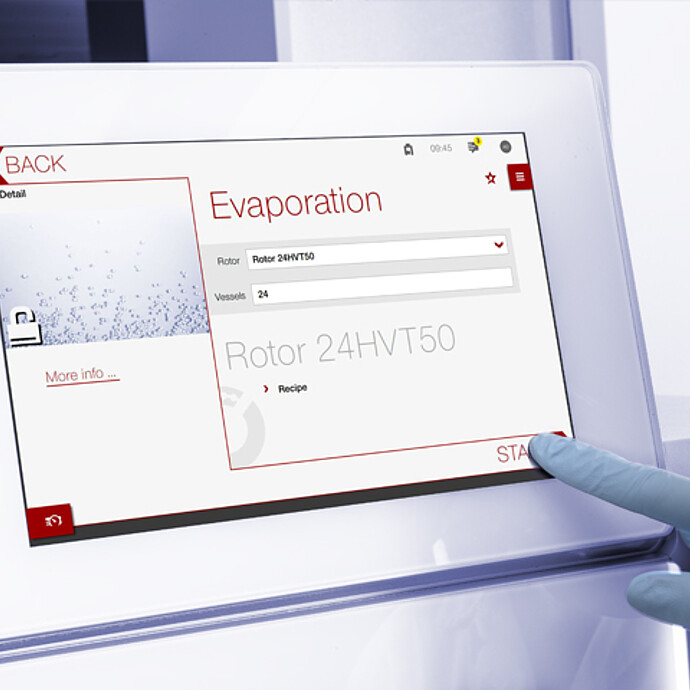 使用Multiwaven 5000 的红外温度传感器控制蒸发工艺,这样您就可以根据红外温度限值和可观察温度偏差 (ΔT) 定义去调节所需的残余量。当达到设定的红外温度限值或定义的 ΔT 时,24EVAP 就会停止蒸发工艺,且容器会自动冷却。软件引导的终点确定可防止容器变干,且无需使用可能会污染样品的内置探头。