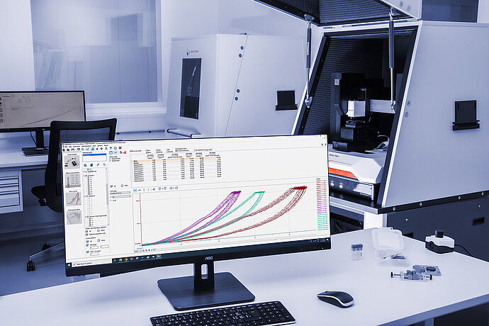 借助功能强大但易于操作的软件,用户可以完全控制压痕程序(载荷、位移等)。软件会自动分析结果,另外还提供了统计模块,让用户可以获得数据和结果的快速分析。可以执行用户定义的 ASCII 导出,并且多名用户可以利用受控的访问权限来使用仪器。另外,还可以利用 Hertz 应力模型从压痕曲线的加载部分计算得出弹性模量,与常用的 Oliver & Pharr 方法相比,该方法更适合生物材料。