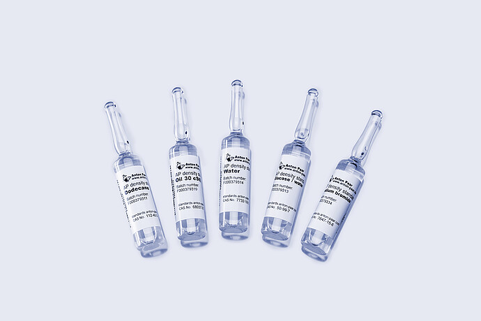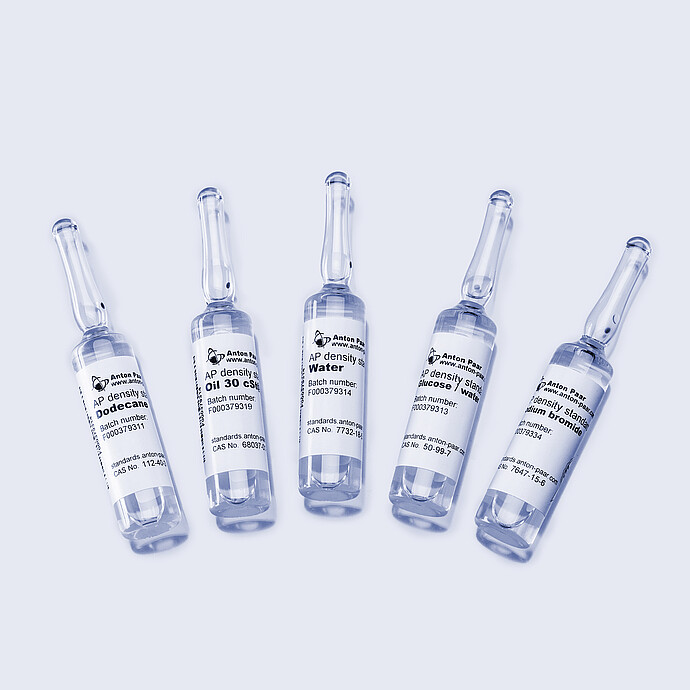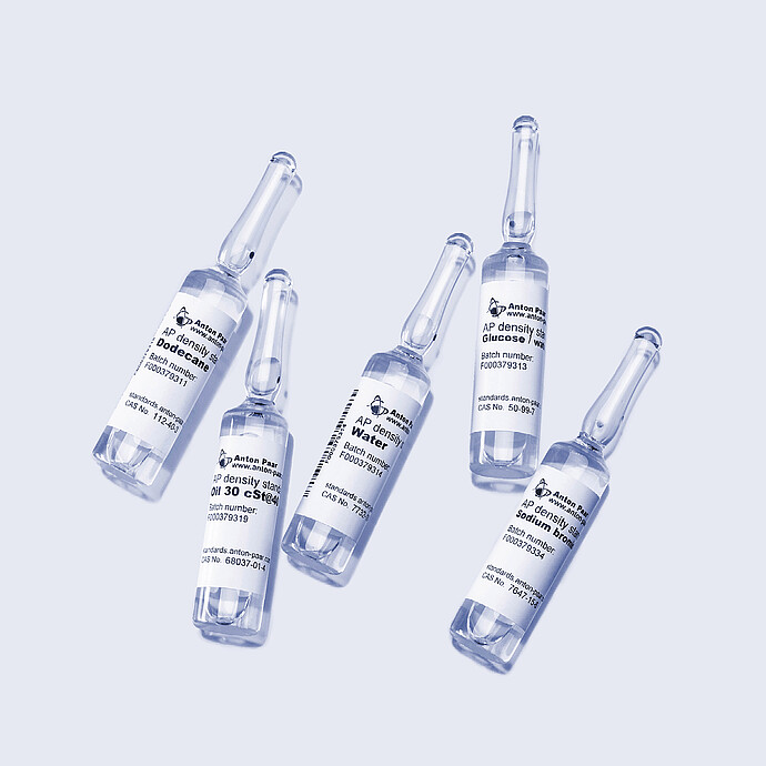 从密度为 0.75 g/cm³ 至 1.25 g/cm³ 的不同标准品中进行选择,以代表您自己的应用。无论是有机的、水性的还是黏性的,您都能找到匹配您需要的正确选择。为了您的安全和方便,确保您的测量质量,我们只提供稳定、易于处理、无毒且安全的液体。通过在线证书随时检查其有效性。
