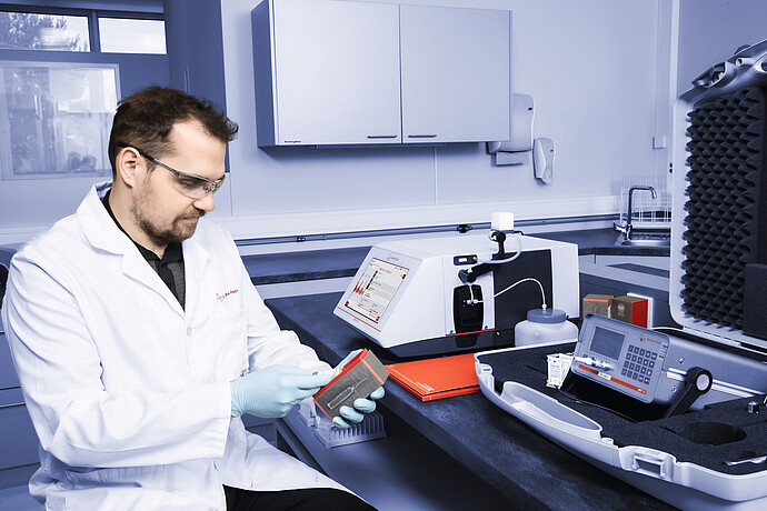 密度测量的质量决定了最终产品的质量。在我们通过静水压平衡于前期测量了我们的密度标准品后,它们已准备好可支持您的校准工作。保留样品仍将留在我们的货架上,每三个月重新测量一次。持续的规范证明采用在线证书的形式,随时可供下载。这意味着,我们的密度标准品是根据 ISO 17025 甚至 ISO 17034 要求制造、存储和测试的。