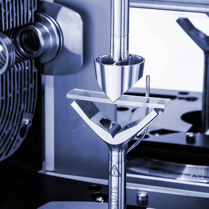 这些测量系统适用于采用线性马达通过 MCR 配置进行弯曲模式 DMA 分析。样品的两端放置在可移动样品架上,静态弯曲工具位于样品的中点处。由于没有多余的样品夹持,所以由约束而导致的测量误差可降至最低。因此,该测量系统适用于准确表征刚性材料,例如 Tg 温度以下的复合材料和热塑性材料、热固性材料以及金属和陶瓷。