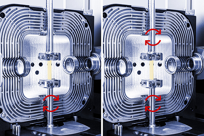 MCR 703 MultiDrive 支持使用两个 EC 马达进行扭摆模式 DMA 测量。因此,除了单马达可实现的各种模式,还可以在马达与传感器分离模式和反向振荡模式下进行测量。这使得可以为每个样品选择最佳的测量装置,从而在整个频率范围内提供精准的测量数据。