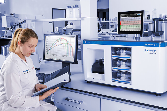 布拉本德拉伸仪可以在实际生产条件下测试面团,符合全球标准,并通过 ExtensoGraph/Brabender 单位(EU/BU)确保清楚的沟通。即使是强筋面团(高达 2000 EU)或弱筋面团(高达 300 mm),也能获得可靠的结果。