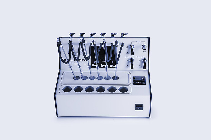 集流动脱气与真空脱气功能于一台仪器,配备智能的温度控制器和可调节气体流量阀。可同时对六个样品进行脱气,且能在冷却室中同时六个已处理过的样品。