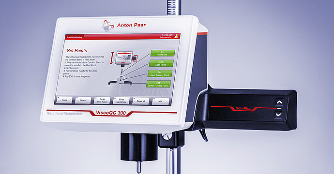 电动的 Heli-Plus 可以自动上下移动 ViscoQC 100/300 测量头,搭配螺旋T型转子用于测量糊状样品的黏度,例如:墙腻子、凝胶、明胶或蜡,或将其用于常规旋转黏度计测量,简化操作。您现有的 ViscoQC 可以在现场轻松升级。