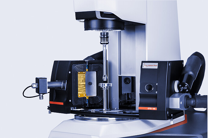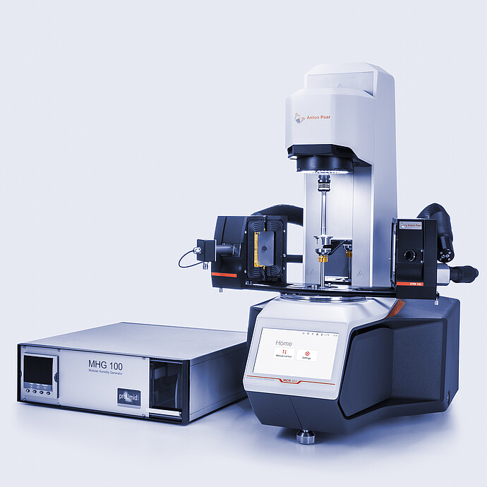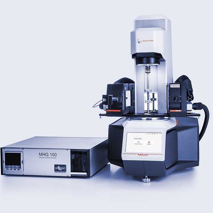 您还可以将湿度选件与可用于标准方法以外的表征的附件结合使用。例如,与粉体流变表征专用附件组合,可分析相对湿度对粉体流动性和内聚力的影响。此外,与摩擦测量单元组合可用于研究相对湿度对吸水材料(如吸湿聚合物)的摩擦特性的影响。 湿度选件还可以与 UV 光固化系统一起使用。这开辟了材料表征的新领域(例如用于医疗应用中 3D 打印的水凝胶)。