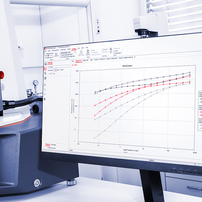 像所有可以连接到 MCR 流变仪的标准附件一样,湿度选件具有 Toolmaster 功能,可在 RheoCompass 软件中直接完成识别与设置。这意味着可以轻松定义和控制所有相关的设置参数,并同时记录环境参数、温度和相对湿度以及流变学和动态力学结果。