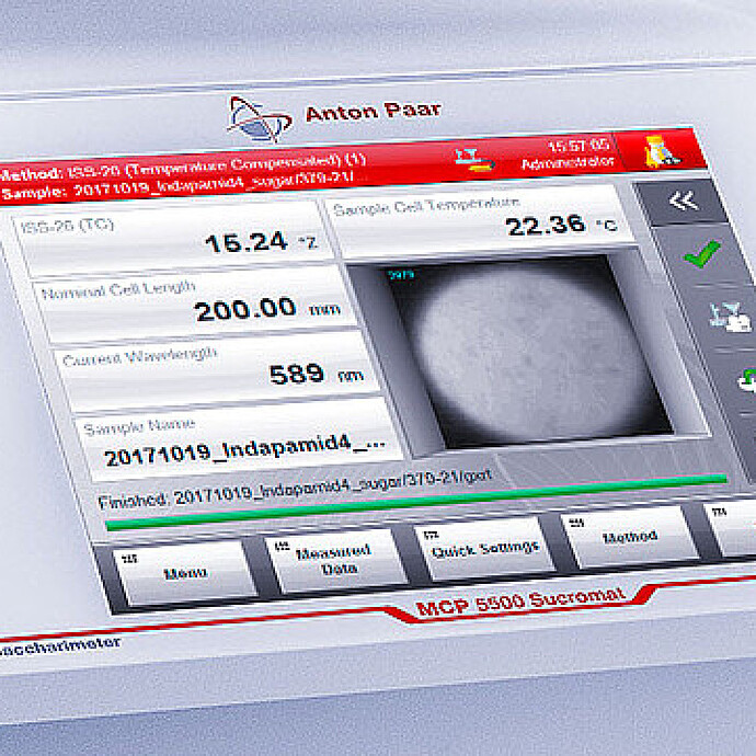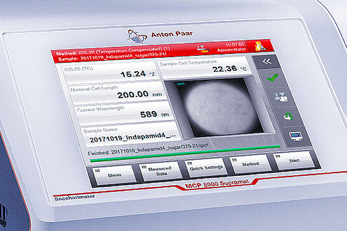 投资 MCP 糖度计是有保障且可持续的,无论您现在还是未来会碰到什么类型的样品。针对MCP Sucromat 型号产品可购买双波长仪器或在现场升级为官方 ICUMSA 880 nm 波长糖度仪,以便测量无铅澄清的含糖样品。根据 ICUMSA 规定,精确温度测量是获得准确结果的基础,尤其是在质量控制实验室应用中。因此,安东帕提供帕尔贴温度控制系统,以便在测量池内实现快速且均匀的温度分布。为通过可视化测量池内部的进样流程,提高进样准确性,MCP Sucromat 仪器可选配内置摄像头,从而实现进样监测功能。该选项可大大减少进样错误。