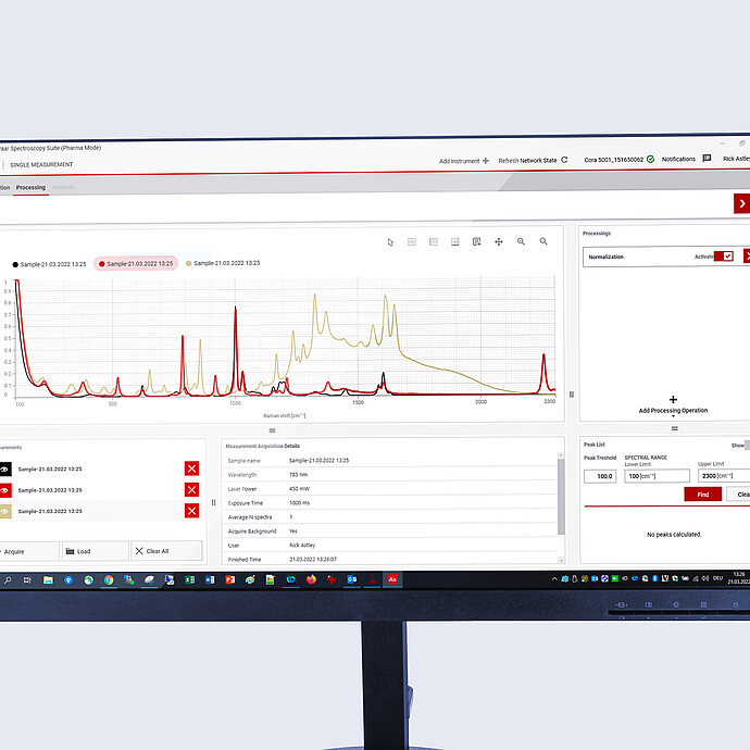 Monowave 400 R 提供了高达 300°C 的温度和高达 30 bar 压力的全部操作参数。Cora 5001 拉曼分析仪可在反应过程中直接在反应瓶内进行时间序列测量,时间间隔和曝光时间可调。微波反应器与拉曼光谱仪通过特殊的光纤拉曼探针连接。