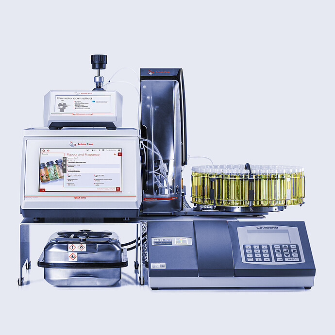 香精和香料测量系统在单个测量周期内提供完整的分析——简化工作流程,同时继续确保可靠的质量评估。在其基本设置中,系统可以快速测定密度和折光率——这是评估产品成分的基本指标。该系统配置还可以将功能扩展至包括旋光度、颜色和浊度,能够为精确、自动化的香精和香料测试提供整体解决方案。