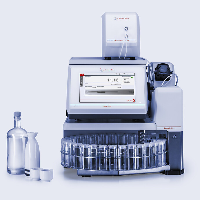 清酒测量系统专为清酒行业设计,可同步精准测定酒精含量与日式浸出物。该系统已获得国家税务局 (NTA) 的征税批准,集成高精度密度计与精细调校的光谱仪,前者可测定日本酒度数 (SMV),后者可精确量化乙醇含量。通过将这些技术整合为简化版分析流程,实现了生产参数的实时监测和优化,确保清酒产品的一致性和高品质。