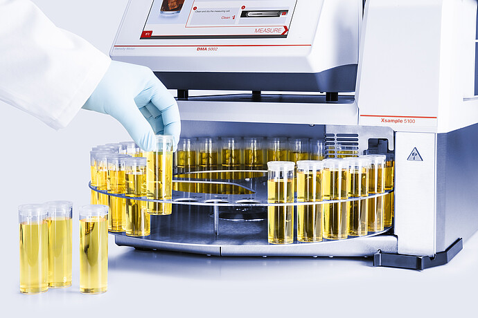 该系统配备了一系列新技术,即使在连续生产过程中,也能快速捕捉极细微偏差。FillingCheck 能够即时识别气泡或颗粒,并在必要时发出警告。U-View 摄像头实时监控充液 U 形管状态,确保实时检测差异,并防止因进样错误导致的测量失真。ThermoBalance 功能可自动补偿测量温度的变化,以确保结果准确;可选配的条形码阅读器可按名称识别每个样品,使每次测量均可追溯,便于文档记录。