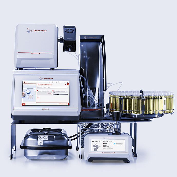 高样品通量和不同的测量要求可能具有挑战性。制药测量系统配备了多功能自动进样器。自动进样器不仅能够可重现和可重复地将难处理的样品(例如黏度较高或危险成分)送进测量模块,而且之后还可正确且可追踪地清洁和检查它们。这为实验室的其他任务腾出了宝贵的资源。