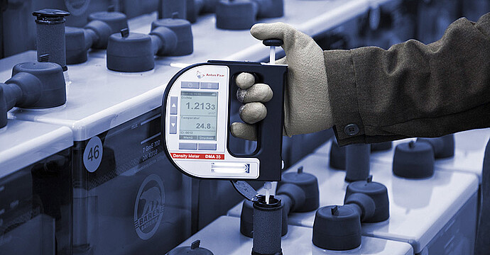 DMA 35 Basic 是入门级手持式密度计,可通过内置泵直接从储存容器中取样并进行现场测量。测量结果显示为密度或浓度,例如 °Brix、% v/v 酒精浓度或 % w/w H2SO4。由于采用轻质而扁平的设计,测量难以触及的样品(例如储存在窄机架上的汽车蓄电池或取自堆放的酒桶中的葡萄酒样品)很方便。