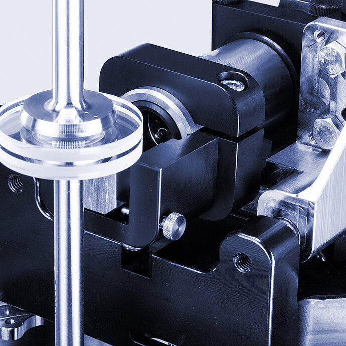 除了可通过镜子上的下夹板对焦样品,系统还可以从侧边集中定位到样品的间隙。支架可向 x 和 z 方向移动,在径向和轴向方向上扫描样品。用光纤照射样品,可沿着光轴或沿着合适的光导支架照射。