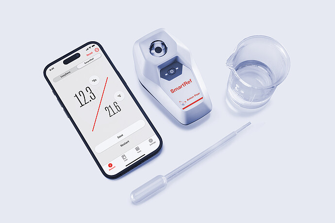 SmartRef 数字式折光仪是一款小巧型便携式智能设备,适用于各种应用需求。结合免费的移动应用程序,它能够提供超过 15 种不同的测量方法。测量海水水族馆或游泳池的盐分含量、啤酒的提取物含量、葡萄酒中的糖分含量、水果和蔬菜的甜度、蜂蜜的水分等。