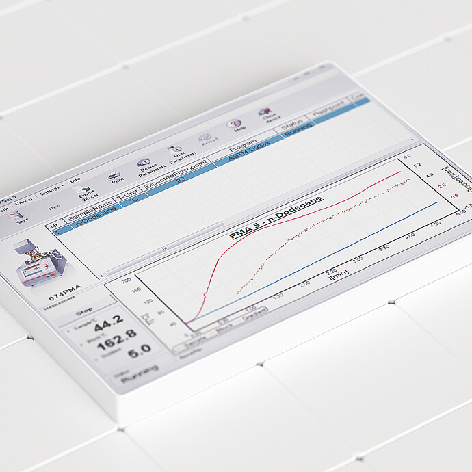 该软件主要用于读取和评估测试数据以及控制自动闪点测试仪 PMA 5、CLA 5、ABA 4、TAG 4 以及其早前的型号(PMA 4、 PMA 4 SC、CLA 4)。 该软件菜单简单明了,操作简便。 该闪点测试仪通过零调制解调器电缆连接到 PC-RS 232 接口或连接到 USB 端口。语言可以选择英语或德语。