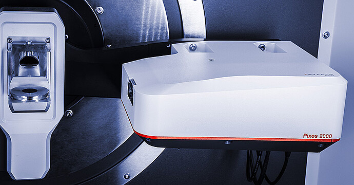 Pixos™ 探测单元的探测器能够提供无与伦比的测量分辨率,这要归功于 55 µm x 55 µm 的像素尺寸 — 这是市场上用于XRD 平台更小的。小像素尺寸与 XRDynamic 500 的 TruBeam™ 理念中特有的扩展测角仪半径相结合,意味着利用标准 Bragg-Brentano 配置进行测量时,可以实现比传统衍射仪提高 20% 的测量分辨率。