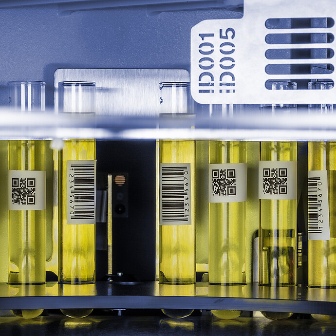 Xsample 5200 带有集成的 1D/2D 条形码读取和样品瓶旋转功能,即使样品瓶放置在偏离中心的位置,也能保证准确识别。这可为任何实验室装置提供可追溯、全自动的工作流程。全新样品瓶盘可视化功能,在添加样品时可实现快速直观操作,同时引导式工作流程与清晰过程控制,每次均能实现可靠且不受操作员影响的运行。