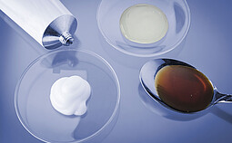 大约 6 个月后,管内存储的皮肤凝胶将会变硬。 | 通过频率扫描检查存储稳定性,然后观察并避免凝胶的相分离。 | 通过流变振荡测试可以快速而精确地执行频率扫描。使用预定义的测试模板,几分钟即可了解黄原胶含量不同的凝胶的特性。 |